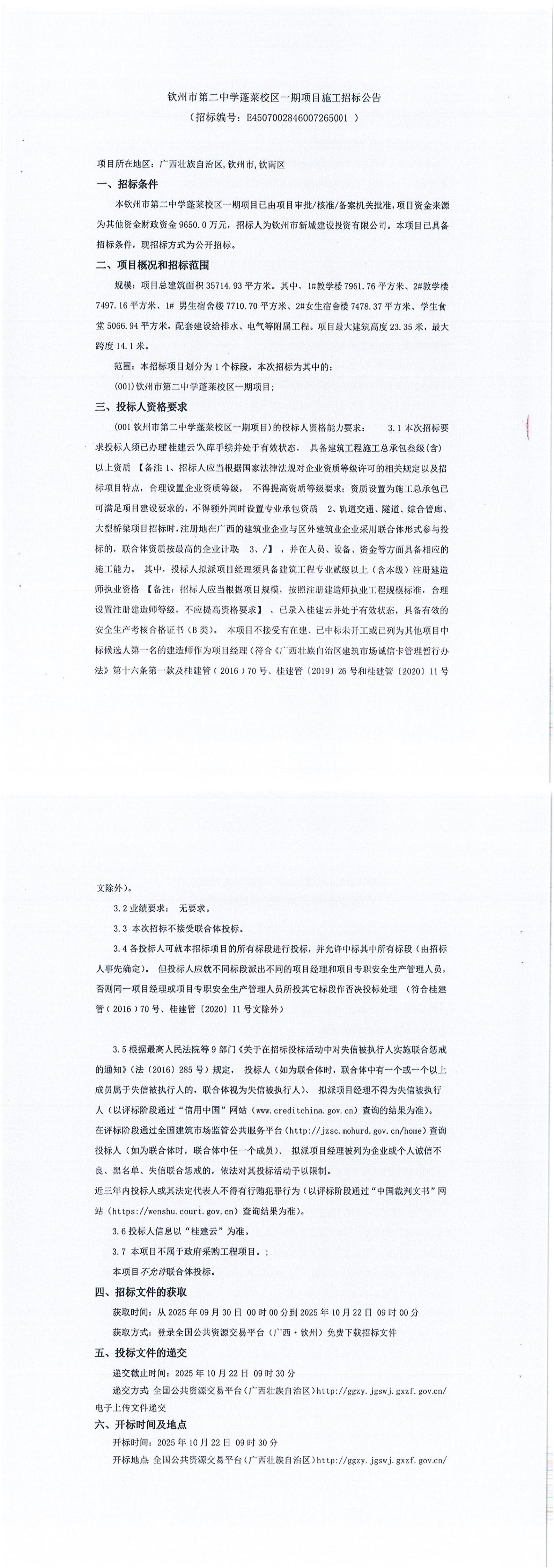 廣西建拓工程項(xiàng)目管理有限公司受欽州市濱海供應(yīng)鏈有限公司委托,現(xiàn)就賓陽(yáng)縣公共配送中心勞務(wù)派遣服務(wù)項(xiàng)目進(jìn)行公開(kāi)遴選,歡迎符合條件的供應(yīng)商前來(lái)參加。 一、項(xiàng)目基本情況 1.項(xiàng)目編號(hào):GXJT-2025-QZZC002 2.項(xiàng)目名稱:賓陽(yáng)縣公共配送中心勞務(wù)派遣服務(wù)項(xiàng)目 3.預(yù)算金額:235.23萬(wàn)元(按遴選人所需人數(shù)、六個(gè)月薪酬預(yù)算,意外險(xiǎn)、管理費(fèi);...